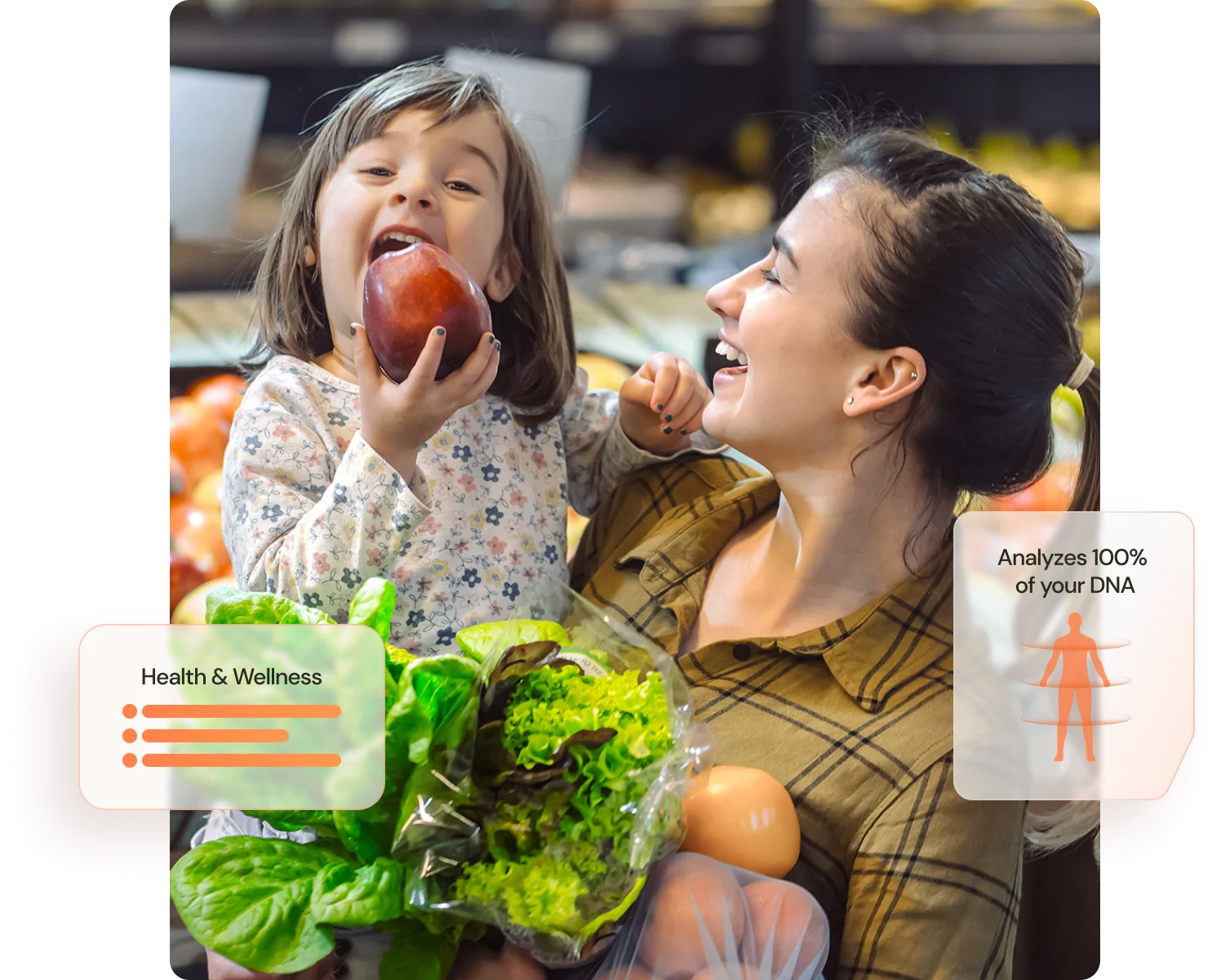 Parent and child choosing fresh produce — health, wellness, and DNA Complete